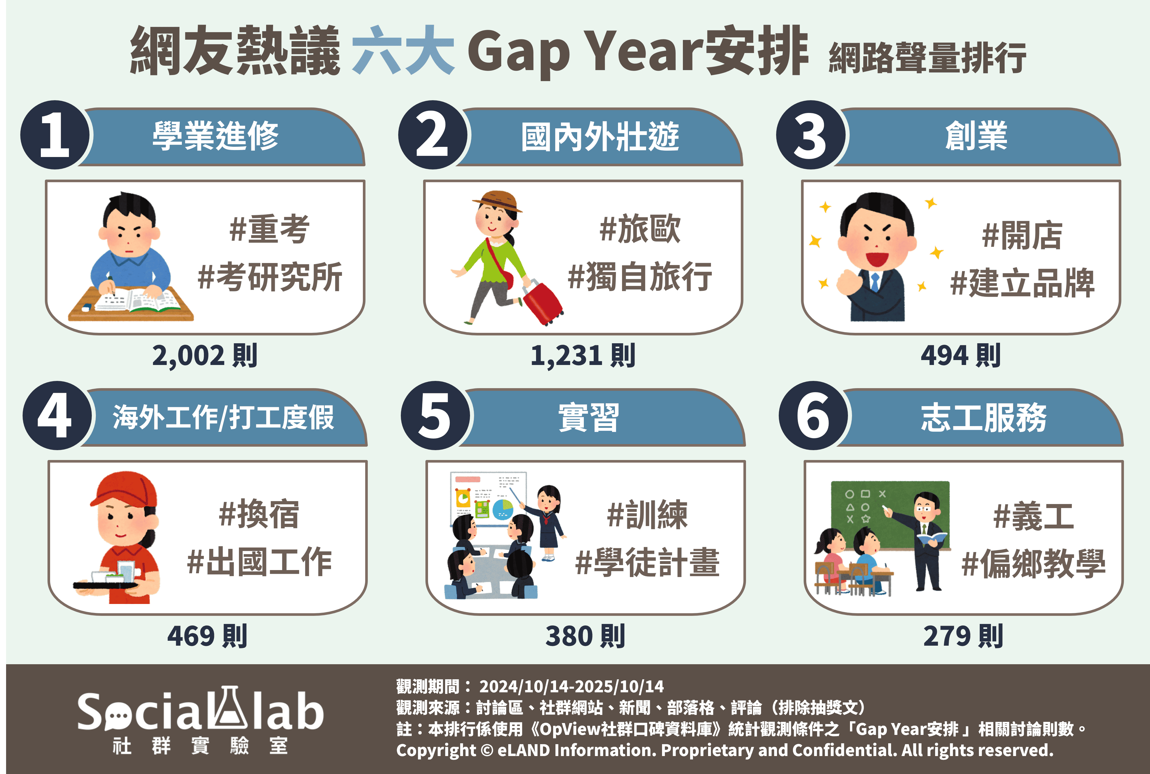 ▲ 網友熱議 TOP6 Gap Year安排 網路聲量排行