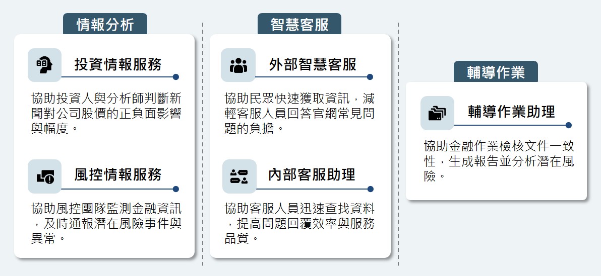 在風險控管場景中,系統會從多來源資料中自動偵測可能影響企業的異常訊號,並透過語意模型比對關鍵變化,提供初步分析,讓風控作業由被動查詢轉為主動偵測,提高預警速度與應對效率。
