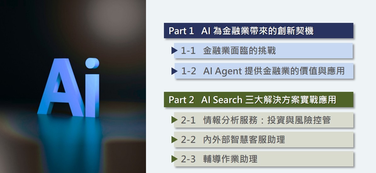 近年全球經濟局勢快速變動,加上科技演進與監管強化,使金融業營運環境面臨多重壓力。在市場波動、資訊爆炸、法規要求與人力成本等挑戰之下,金融機構需以更高效率、更高精準度完成決策與作業流程。在此背景下,AI 工具的導入帶來新契機,特別是具備理解、推理與自主能力的 AI Agent,已成為推動金融業數位轉型的重要引擎。