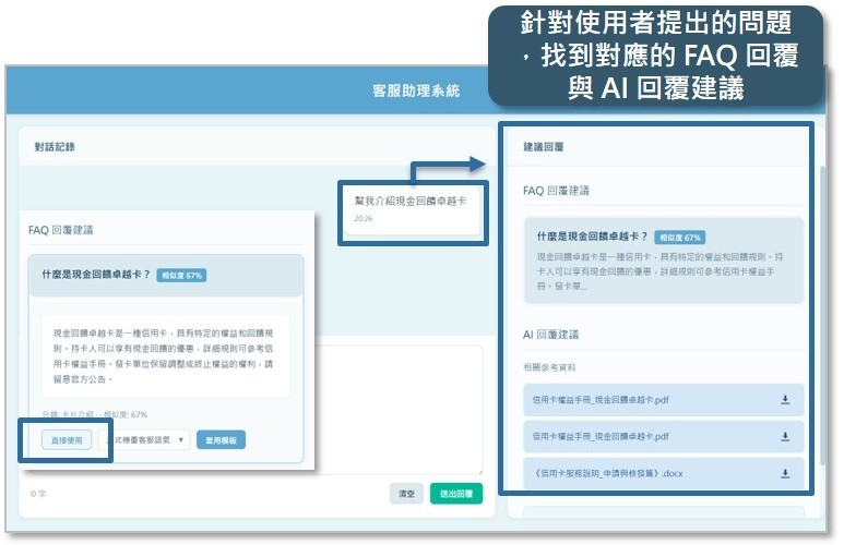 ▲ 內部客服助理系統問答畫面示意圖