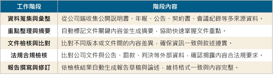 此次發表的第三項 AI Search 解決方案是「輔導作業助理」。在傳統承銷、上市輔導或授信相關流程中,金融單位通常需要處理來自客戶的大量文件,並進行內容消化、交叉比對及挑選有利資訊,以作為後續撰寫報告書或審查意見的依據。然而,這類工作流程高度仰賴人力,不僅耗時費力,也因資料量龐大與內容多元,使作業難以兼顧效率與完整性。