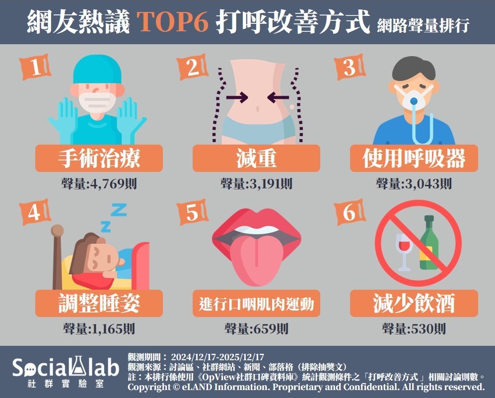▲ 網友熱議TOP6打呼改善方式 網路聲量排行