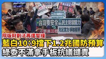 【中時新聞網】1.25兆國防預算遭藍白10:9 擋下!綠委不滿拿手板抗議|YouTube熱門事件